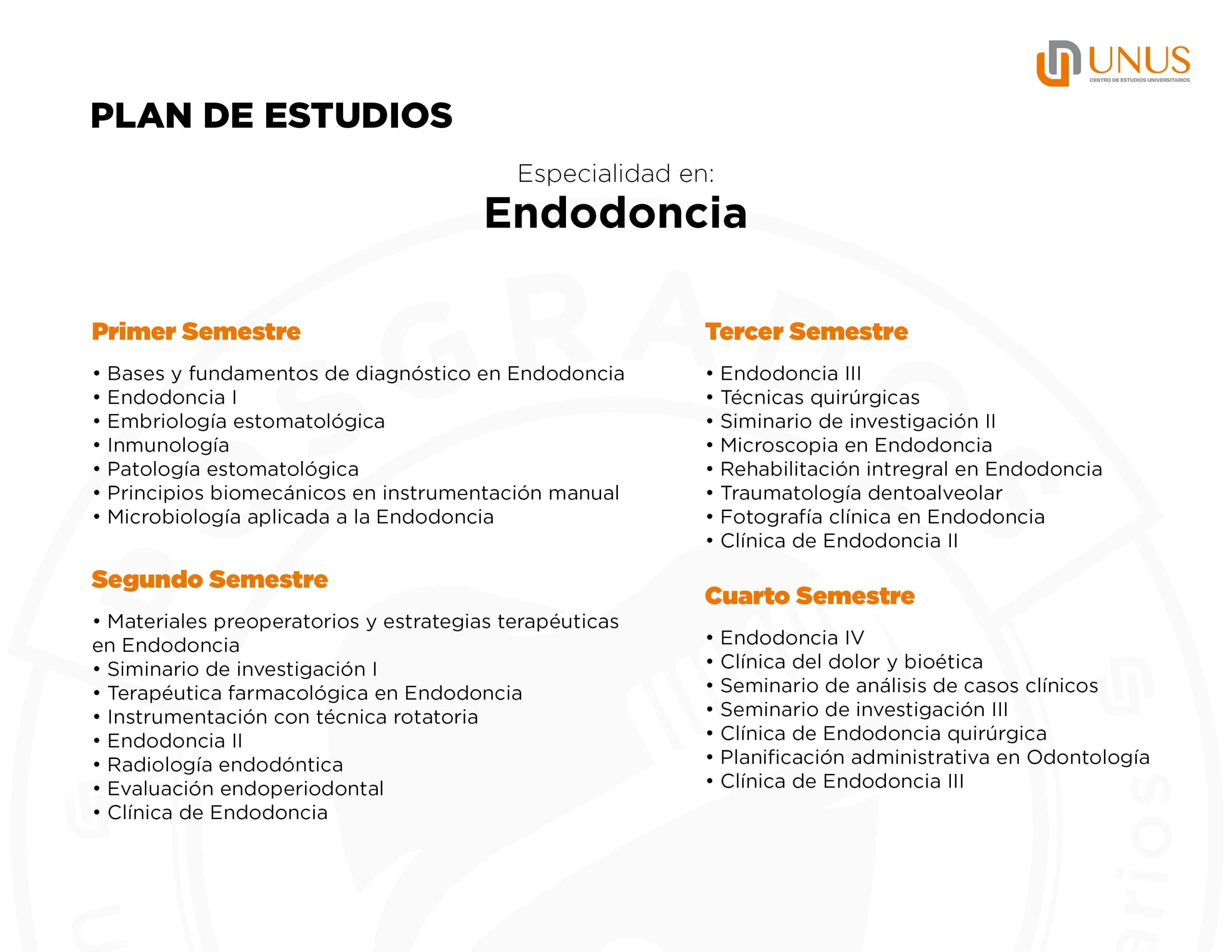 Formar profesionistas altamente especializados con las competencias clínicas integrales necesarias para llevar a cabo la prevención, diagnóstico y tratamiento de las afecciones pulpares, periapicales y traumatismos dentoalveolares que permita mejorar la salud, funcionamiento y estética de los pacientes; a través de nuestro modelo educativo con una formación sólida sobre bases básicas, disciplinares, científicas e investigativas, con alto sentido de ética, valores y responsabilidad social.